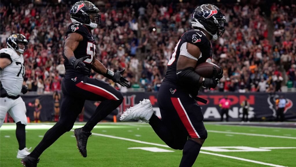 Houston stunned Jacksonville with a 26–0 fourth-quarter avalanche, flipping a 29–10 deficit into a 36–29 win. The swing hinged on a vintage backup-QB heater from Davis Mills plus a pass-rush crescendo that ended with a Will Anderson Jr. strip-sack and Sheldon Rankins scoop-and-score at :07. From a fantasy lens, it was a tale of two halves: Jacksonville banked points early, but Houston’s stars—and usage—took over late. AS USA+3NFL.com+3ESPN.com+3